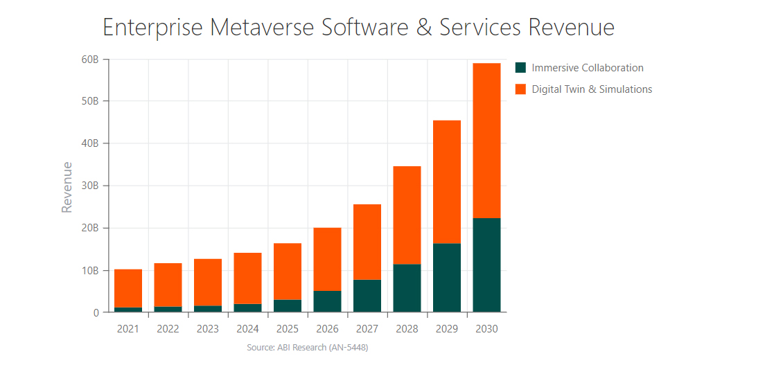 The industrial metaverse market is built on immersive collaboration and digital twins/simulations, and according to researchers, the revenues from these aspects are predicted to reach $58.9 bn by 2030. At the same time, the enterprise metaverse market is splintered, as most companies that offer metaverse-based solutions set up their standards and regulations for the network. Therefore, there is a problem of lack of interoperability, creating a challenge for further market growth. The answer would be standardization, which industry players will initiate and adopt.
